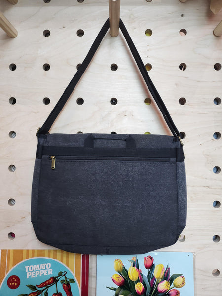 This vintage canvas messenger is the perfect bag for throwing on and going on an adventure! This bag includes: Adjustable shoulder strap; Magnetic closures; Multiple pockets; Zippered rear pocket and a Padded grab handle.