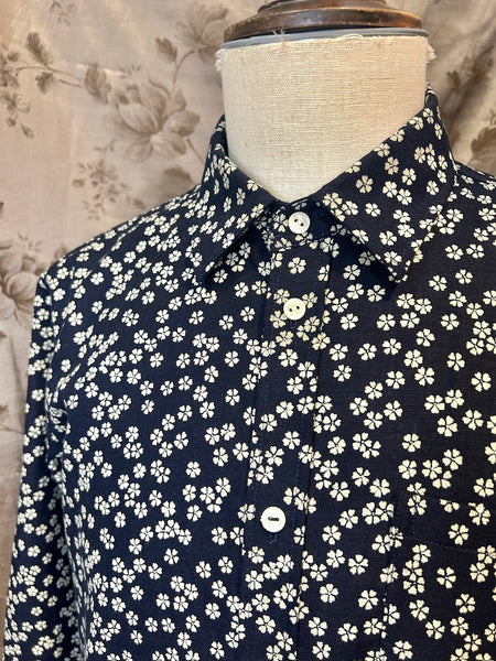 Front button closure and left chest patch pocket