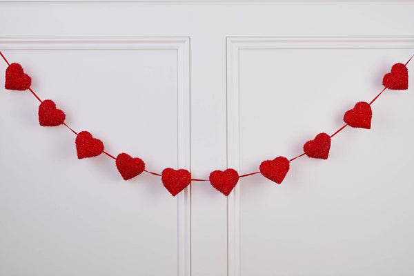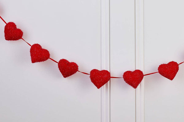 These red heart garlands are perfect for adding a touch of Valentine’s charm. They look beautiful hanging on a mantelpiece, draped over twigs, or laid along a table as a simple yet striking decoration.