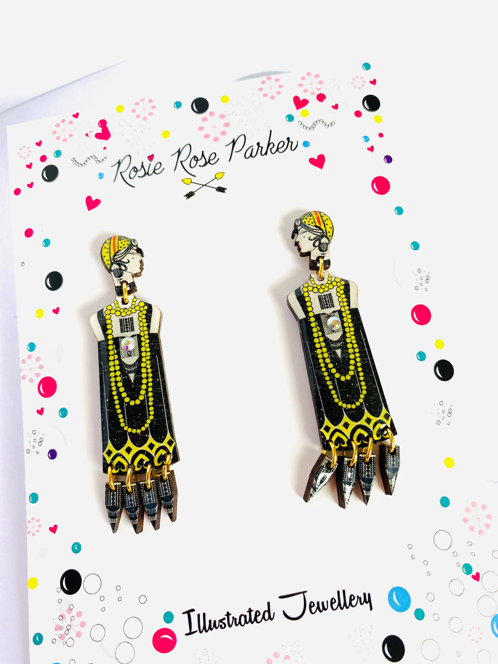 The brand is full of unique style, embracing an art deco and vintage feel... bringing an array of artistic detail to al the jewellery pieces. Rosie Parker prides themselves on wonderful collections, offering customers something beautifully unique and interesting. Each piece is illustrated inhouse, and printed on certified woods, Customers love the story behind each piece and the illustrative magical feel. All items are handmade in the UK !