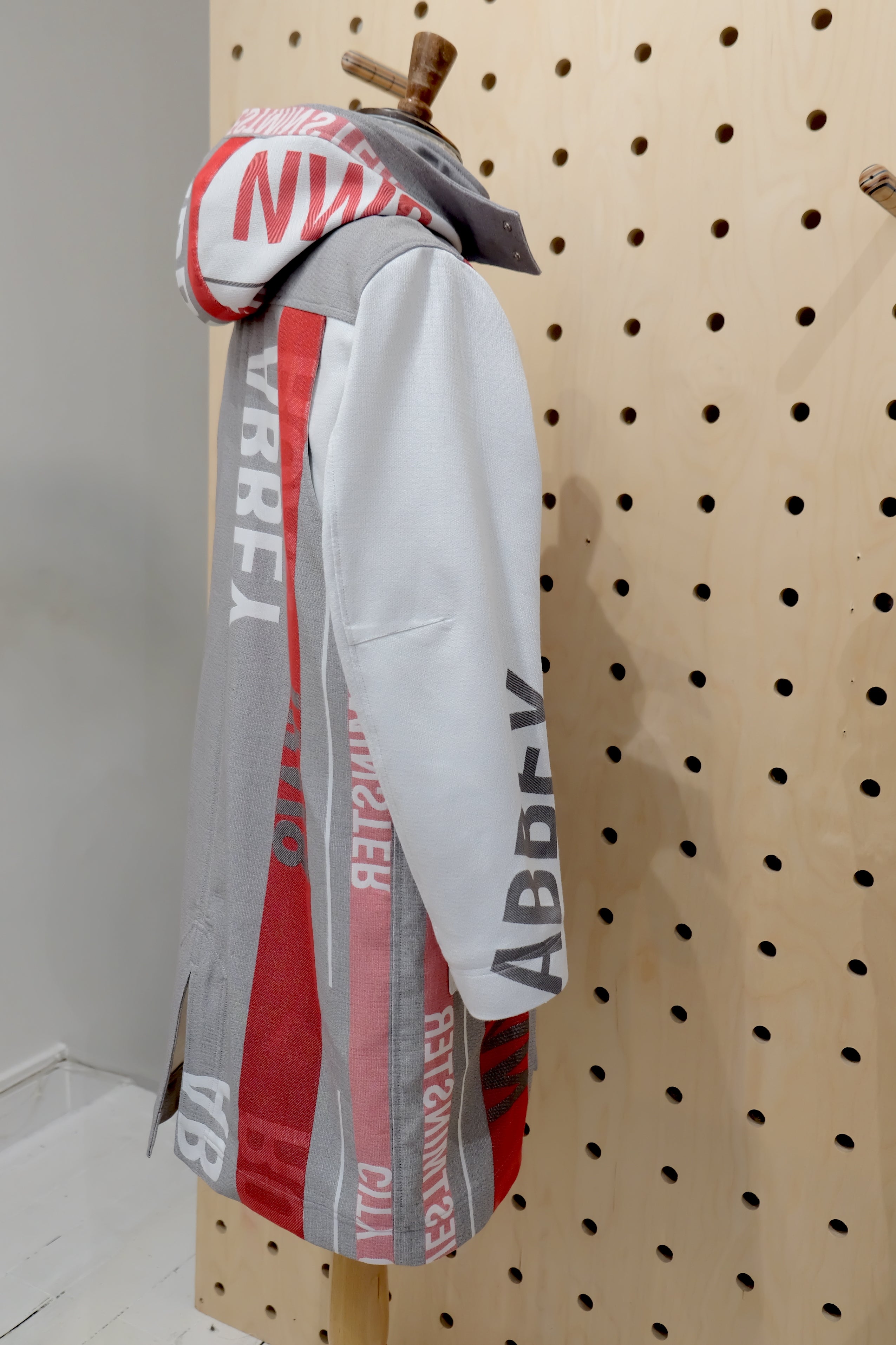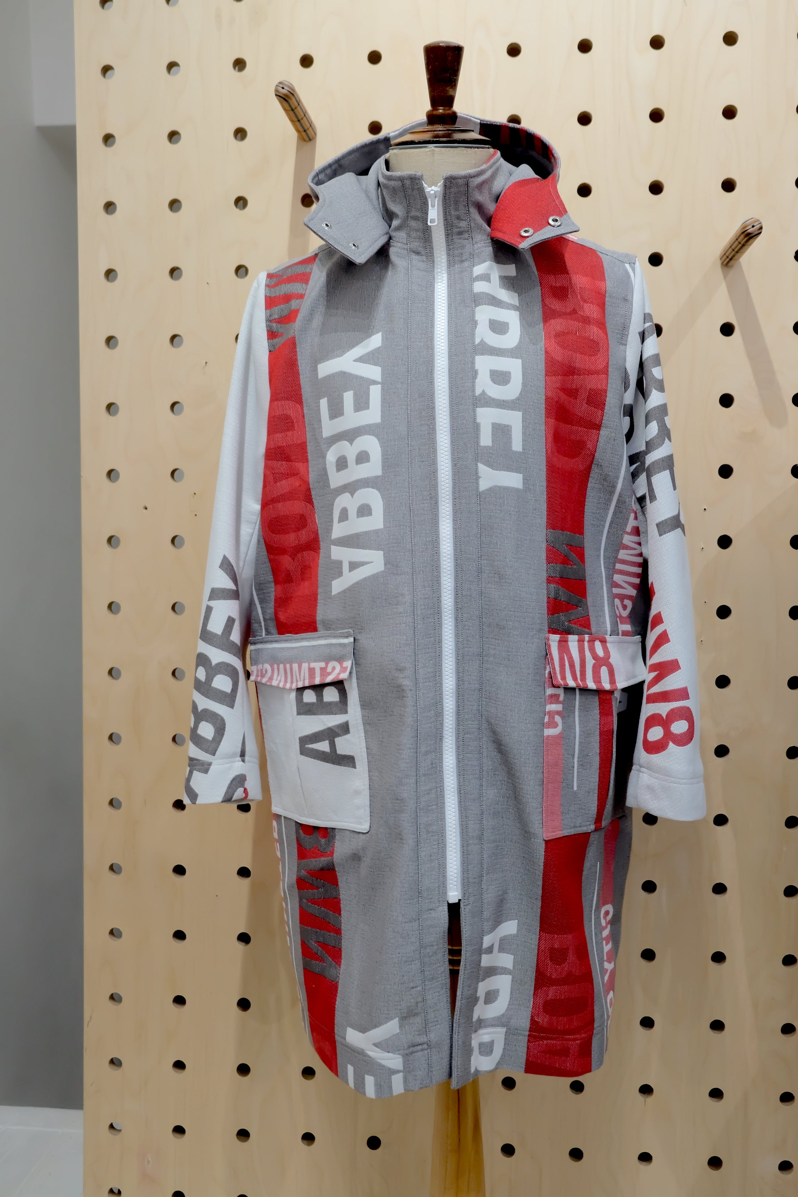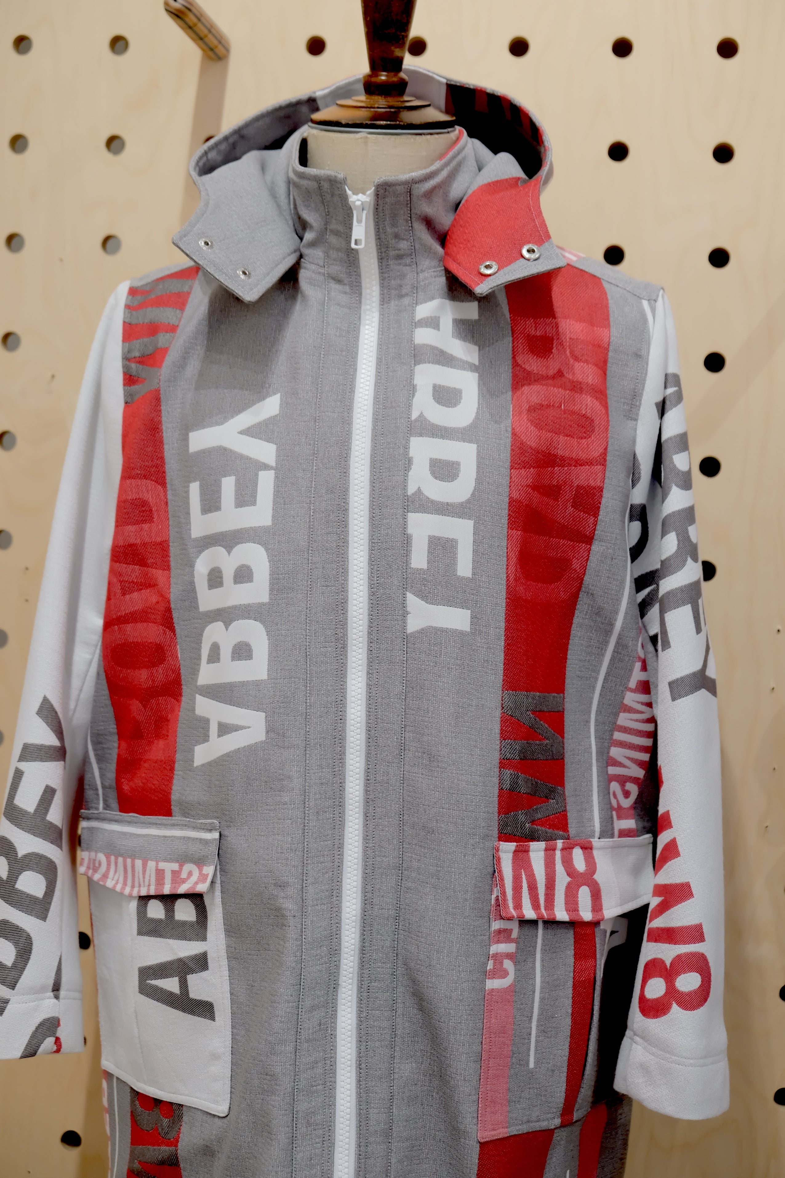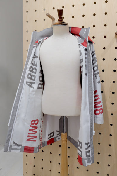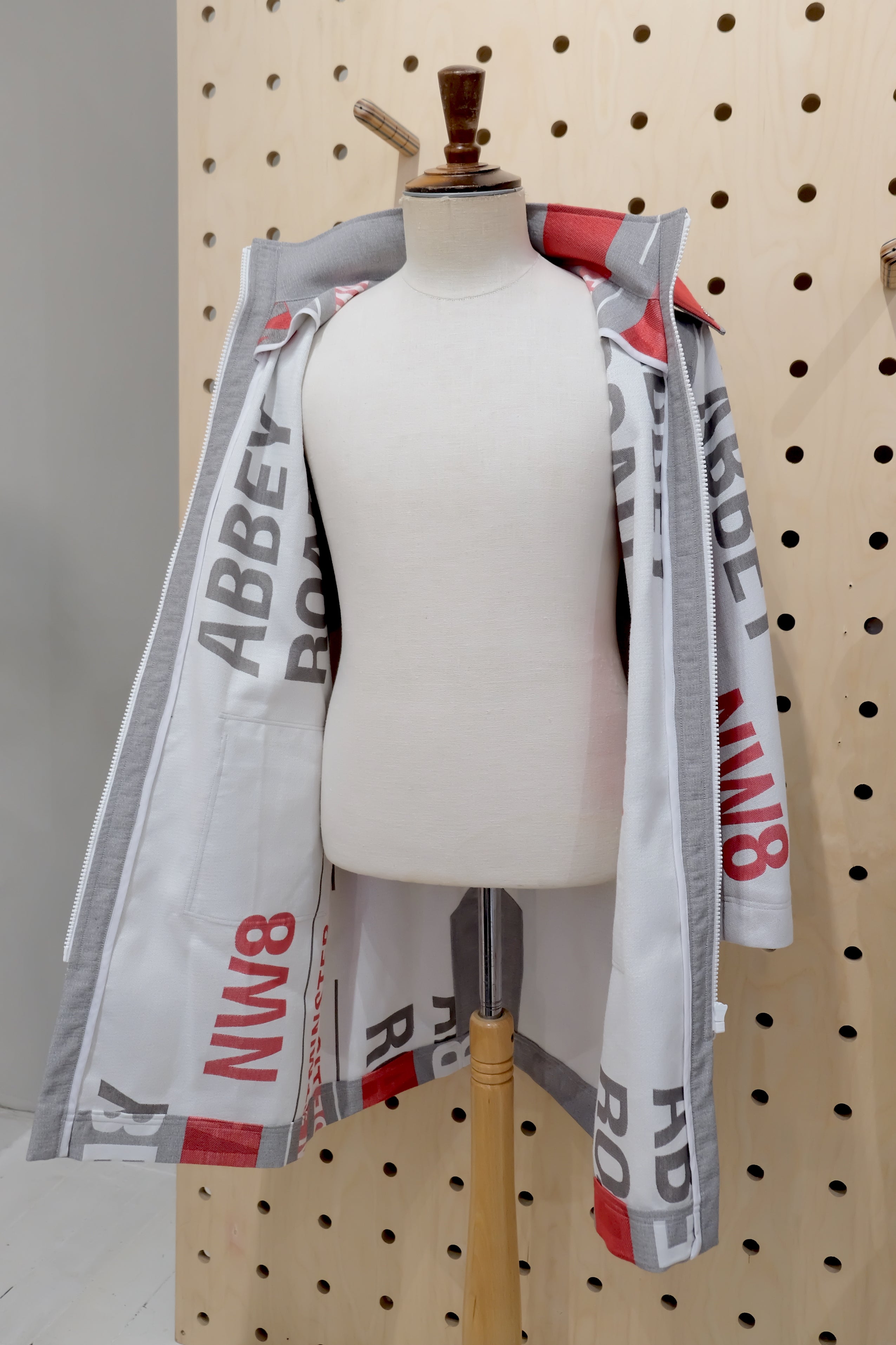ABBEY ROAD NW8 panel design weaved in synthetic fabric, positioned and placement by cutting each pattern pieces.