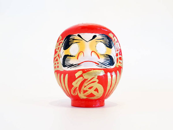 Daruma have been the repository of wishes and goals for Japanese people for centuries. The plump papier-mâché figures were once made by under-employed silk worm farmers in the winter months, and represent Bodhidharma, the eastern carrier of Zen buddhism. Their purpose is to help the owner achieve their goals. Traditionally you should begin by painting the left eye (right as you look at it) first, when a goal is set - adding the other eye once it is achieved. The process of painting an eye (with a brush or marker pen) should at that moment impart your dream. Items with a deep popular history, daruma are alive today and are the regular choice of exam students, long distance runners, politicians and anyone with a specific goal in mind.