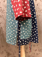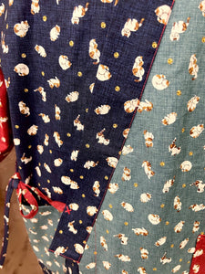Japanese yukata style front cross wrap inside/outside tie closure