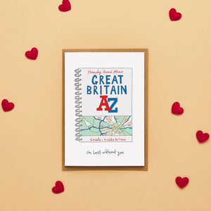When setting on life’s greatest adventures. there’s one thing you should never leave home without: directions. Whether they come from a handy road atlas like the one featured on this funny anniversary card, from a GPS or the verbal instructions from your favourite passenger, it’s certainly sensible to have a little direction in life.