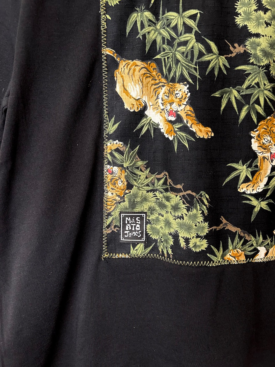 Printed Japanese cotton patch work detail on front with overlock & zigzag stitch edge finishing.