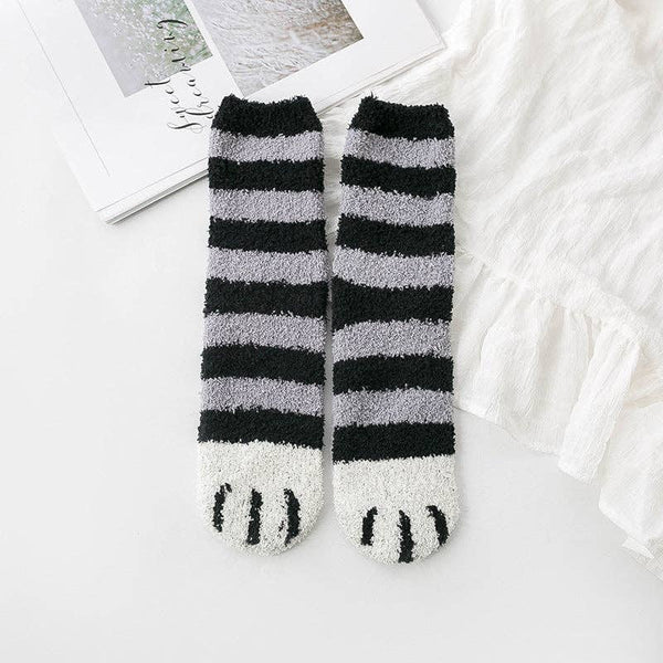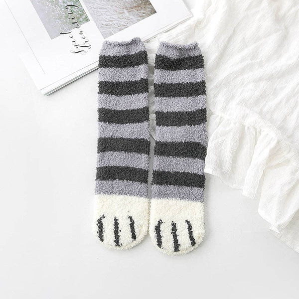 Indulge in luxury and comfort with our Gohobi Cat Paw Coral Fleece Socks. Designed for ladies, these socks feature an anti-hair loss design that keeps feet warm and cozy during cold winter nights.