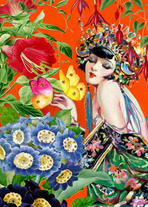 Highest quality FSC certified hand glittered design-led vintage collage greeting card, individually wrapped with an ivory envelope (5 x 7”). Recyclable sleeve. Encapsulated glitter. Blank inside. Designed & made in England