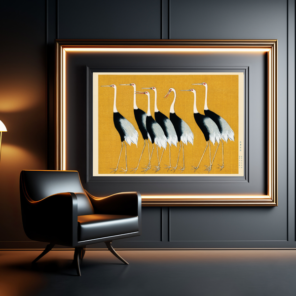 This Japanese Red Crown Cranes Print features a stunning wall print of these iconic birds.