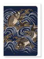 It is said that a koi carp swims up rivers and climbs waterfalls. The Japanese associates koi carps with perseverance in adversity, strength of purpose, determination to overcome obstacles, and the ability to attain high goals. Late 19th century embroidery.