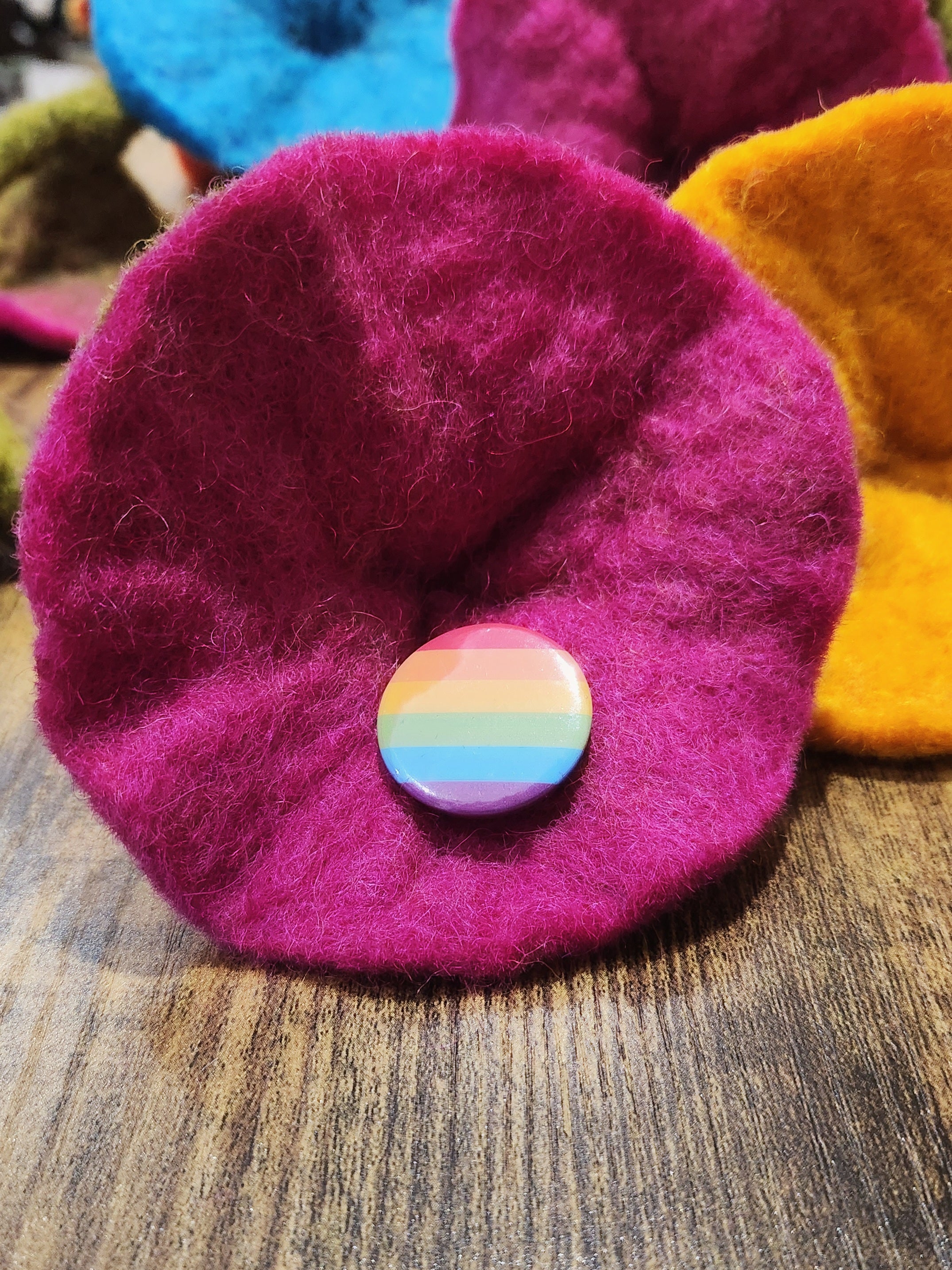 Show your pride with our 25mm rainbow pride flag pin badge. Perfect for wearing on your favourite denim jacket, back pack, or lanyard.