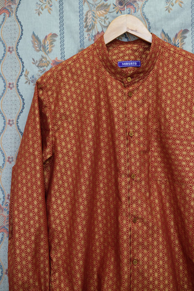 Front button closure, button cuffs for long sleeve. Back yoke. Straight hem line, side seam hem slit opening.